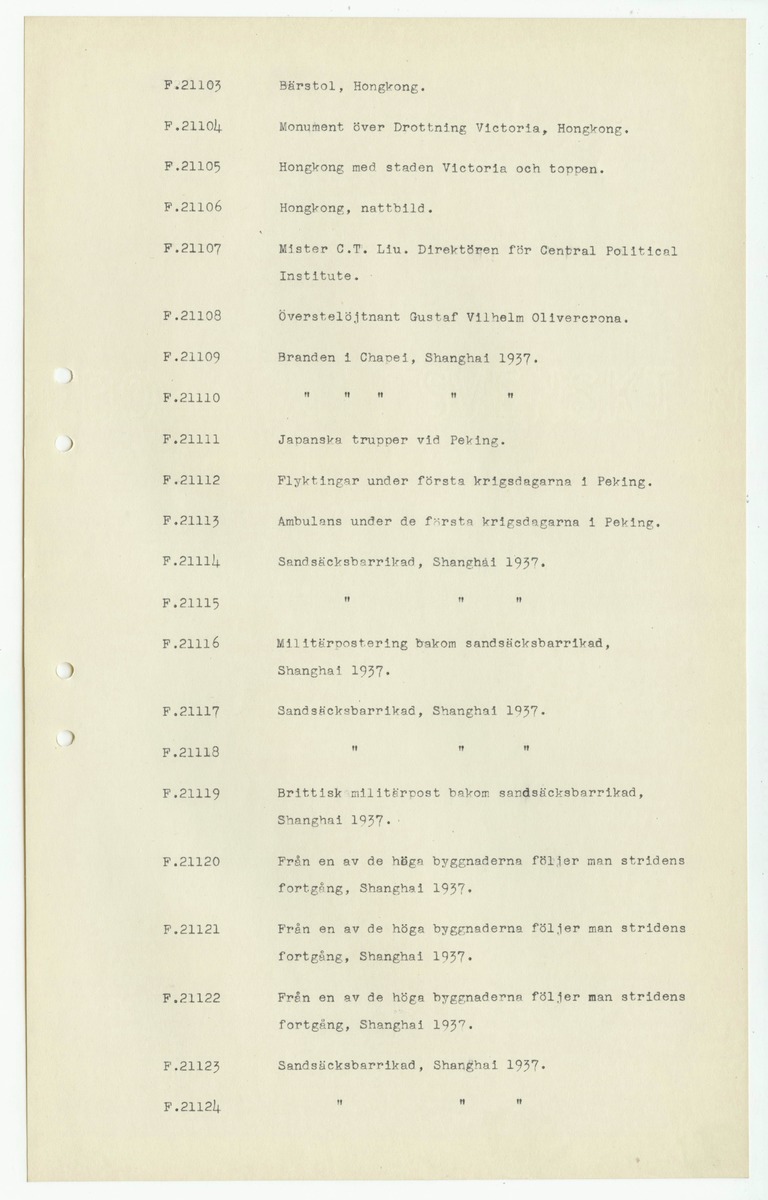 • Sida ur katalog för fotografier, "Presentfotografier" från Johan Gunnar Andersson, F.0001-1999, 20000-.