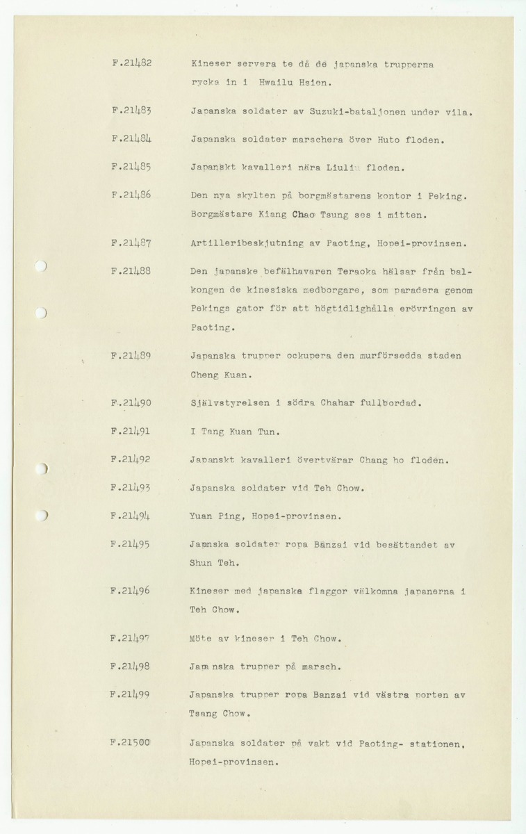 • Sida ur katalog för fotografier, "Presentfotografier" från Johan Gunnar Andersson, F.0001-1999, 20000-.