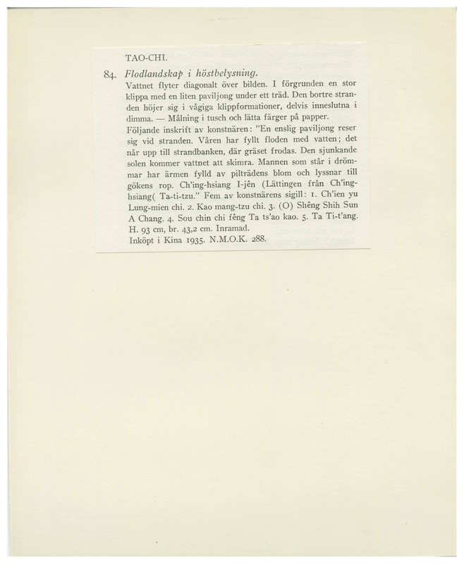 • D1BB-3, katalogkort över NM/NMOK:s (Nationalmuseum, Ostasiatisk konst) föremål.