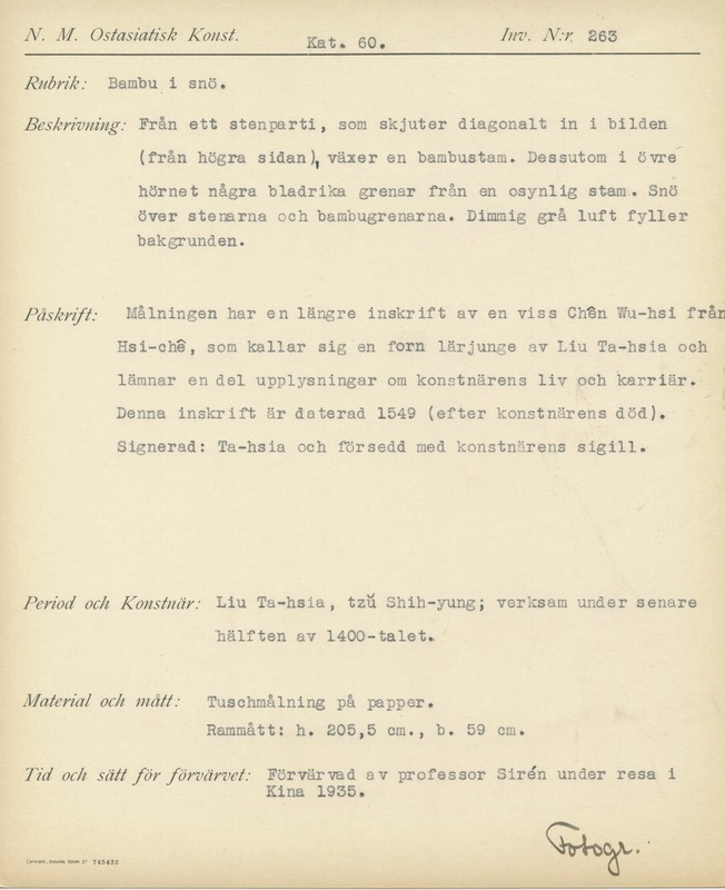 • D1BB-4, katalogkort över NM/NMOK:s (Nationalmuseum, Ostasiatisk konst) föremål.