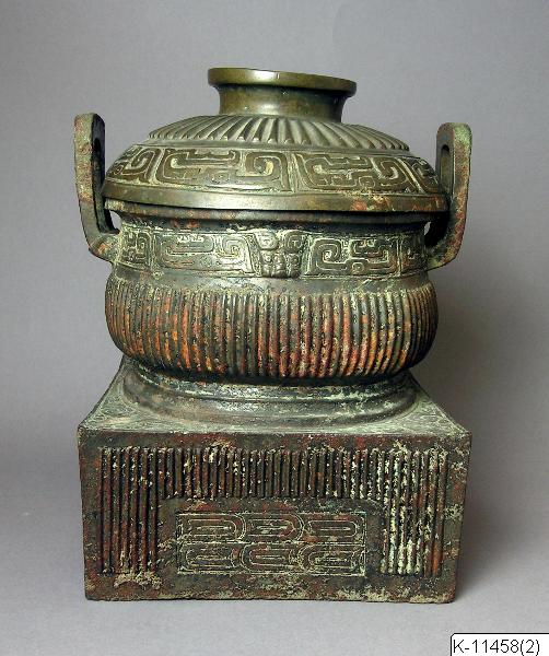Gui – a pair, with lids. Decoration of vertical ribs on lid, belly and base. The neck and lid decorated with animal head and stylized pattern. Western Zhou (ca 1050-771 BC)