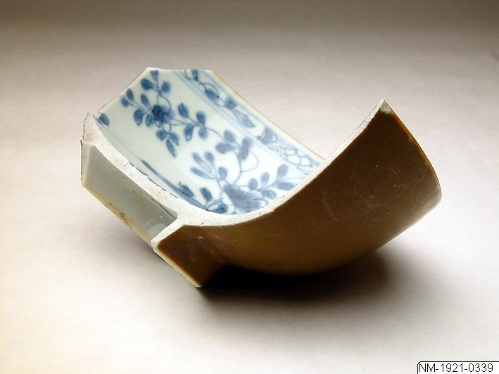 “fragment av blått och vitt kinesiskt porslin upptagna från vraket efter skeppet “GÖTEBORG” tillhörande Ostindiska Kompaniet och som strandade på Älvsborgsfjorden 1745 vid ...