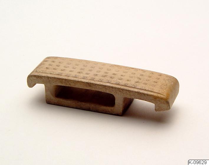 Beslag till svärdsbalja dekorerat med små fyrkanter i relief. Från låda märkt “Jader Pre-Han”.