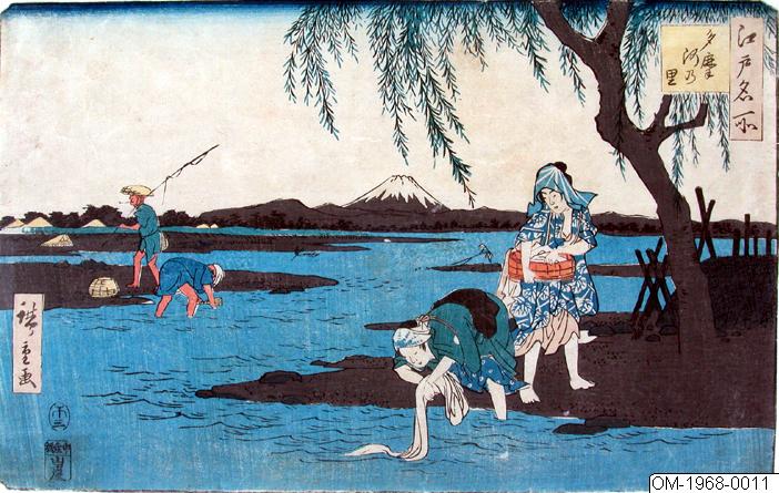 En samling träsnitt med erotiska motiv. Osignerat, Ikeda Terukata. Ca 1905. Lik, utom bl a i färger och kimono-mönster: https://www.britishmuseum.org/collection/object/A_OA-0-114 (No.8 (Higashioji) (Tugging Komachi) / Komachi-biki) Se https://www.shungaisart.com/product-page/1900-utamaro-shunga-japanese-woodblock-print-komachibiki-8 Ikeda gjorde flera parafraser på bl a Utamaro.