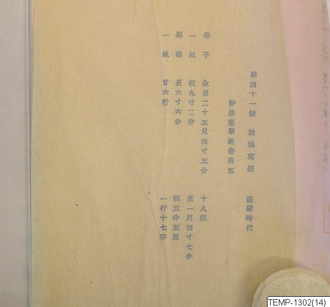 med monteringen H:28 cm.Utgrävning ur Dunhuang samling, Miaofa lianhua jing, vol