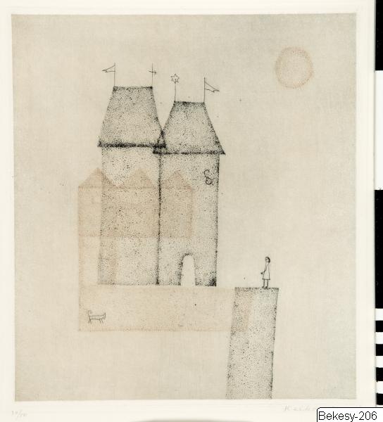 Minami Keiko (1911-2004 ). Colour print. A girl in front of a castle(30 / 50). Signed in pencil. Japan.37,5 x 45 cm