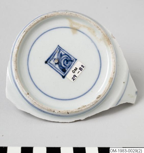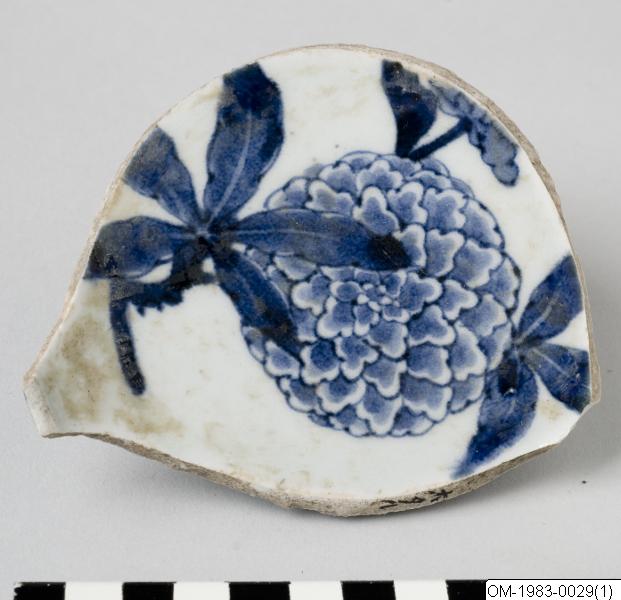 Porslin med blomdekor i underglasyrblått. Kakiemon-stil.