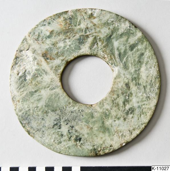 • Mottled jade disk. Plain surface. Longshan culture (?).