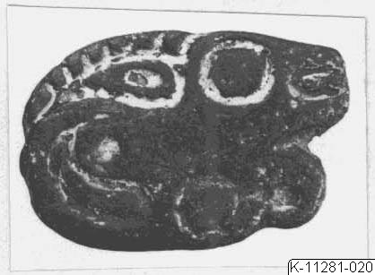 • Beslag i form av stiliserad stenbock. Märla på baksidan.