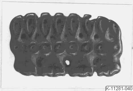 • Beslag i form av fyra åsnehuvuden på rad. Märla på baksidan.