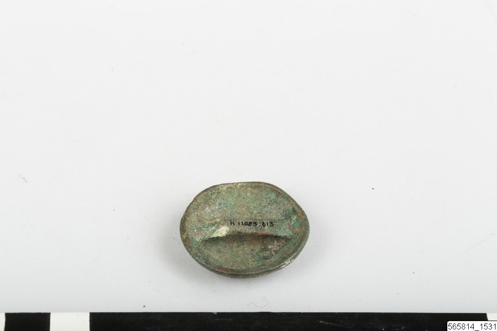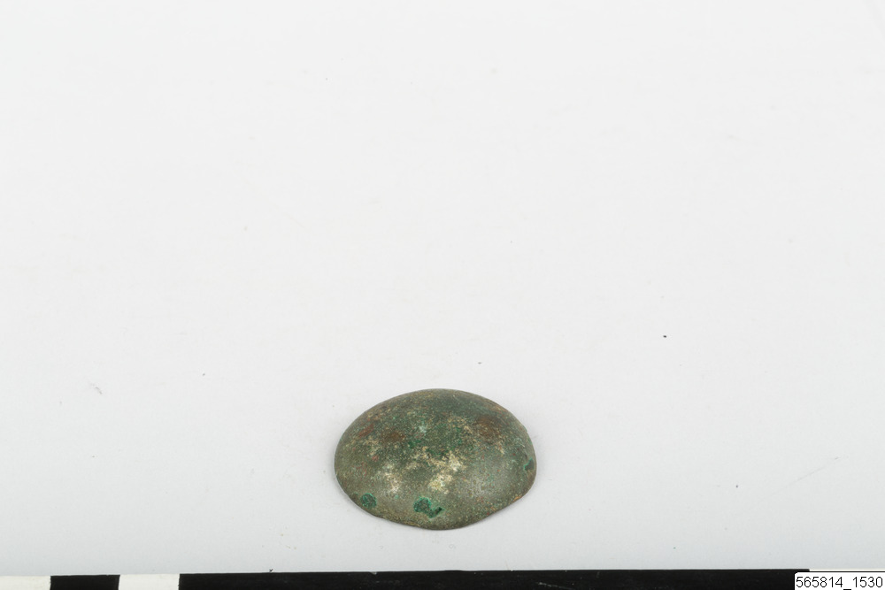 • Beslag, knapp. Rund, lätt välvd med märla på undersidan.