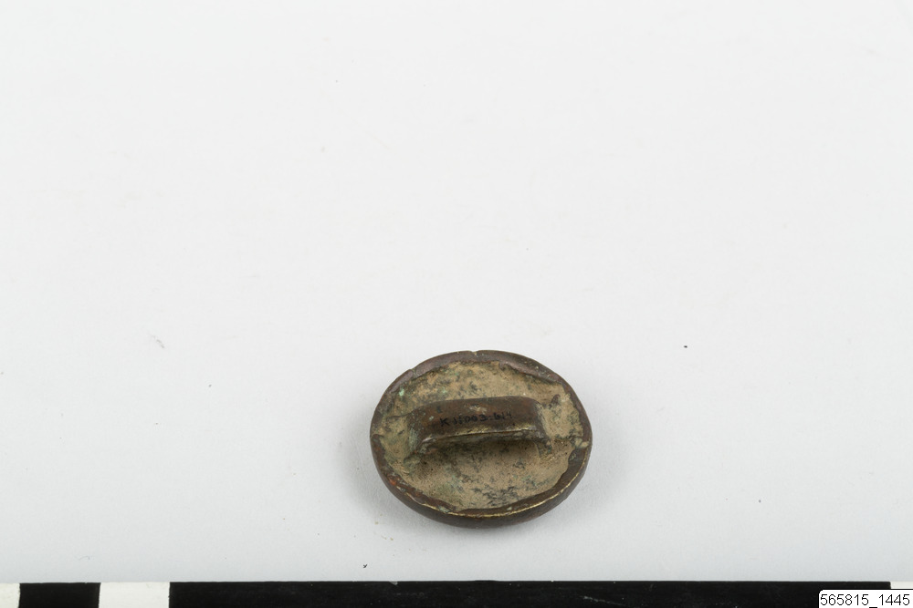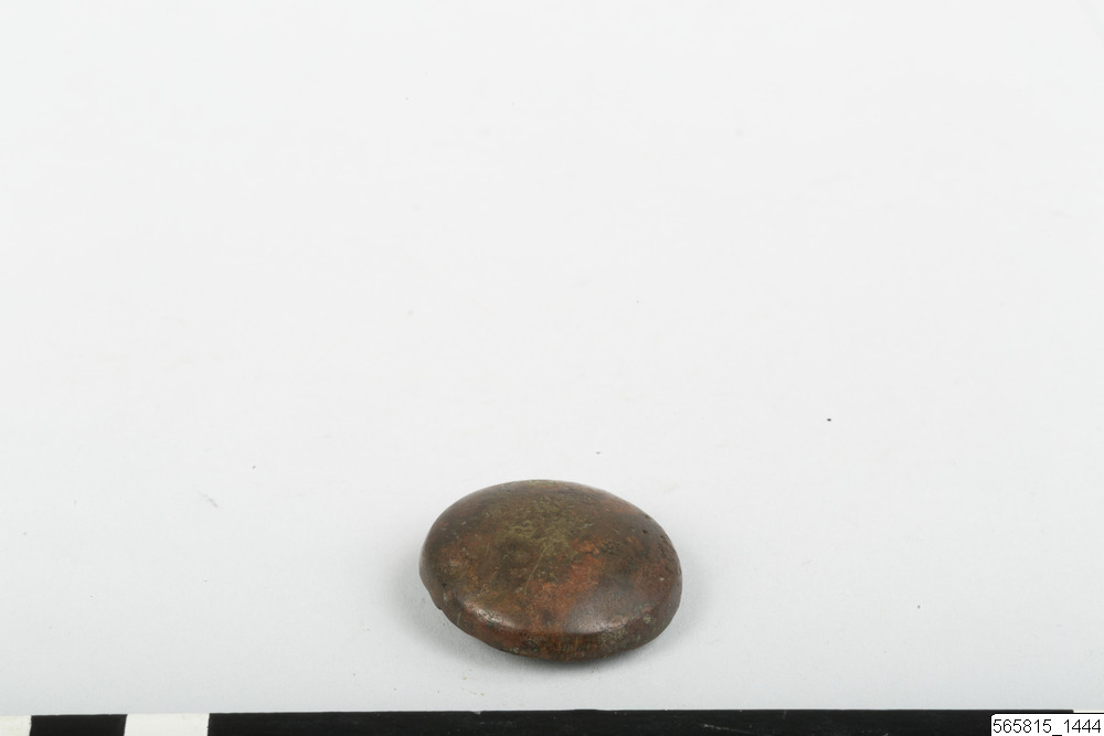 • Beslag, knapp. Rund, lätt välvd med märla på undersidan.