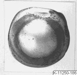 • Beslag, runt, odekorerat. På baksidan två märlor som formar ett kryss.