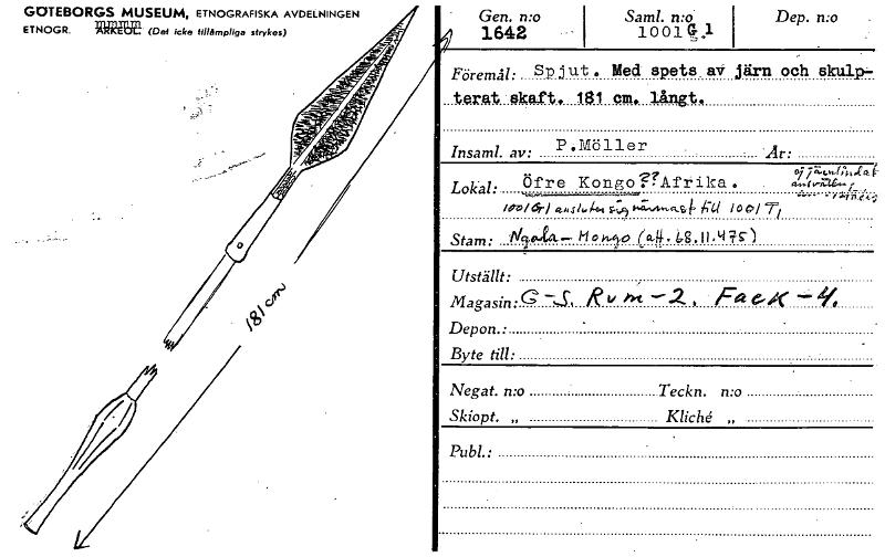 GOTEBORGS MUSEUM, ETNOGRAFISKA AVDELNINGEN ETNOGR. Rkli¥292 (Det icke fillarnpliga sfrykes) Gen. n:o 1642 • - "/ Sam!. n:o 1001 1 -,. Dep. n:o • Föremål: Spjut. Med spets, av järn och skulp, _tomt 4aft, 181 cm, långt, • Insaml. av: P .Möller • -Är: Lokal: ..Öfre...Konso?irAfrika . 49 71 _ •ierea/dri ahsrlu44 5.1.9 ~4.,n-2,1' 14C1 10 Stam: 119; — 1"1"v',Y° (.g.ihL-) Utställt: Magasin: ----,-.S., Rii kx, - 2 , Fa e-X -.'°- 9, Depon.: Byte till: • Negat. n:o Teckn. n:o Skiopt. „ Kliché Pub!.: [ocr]