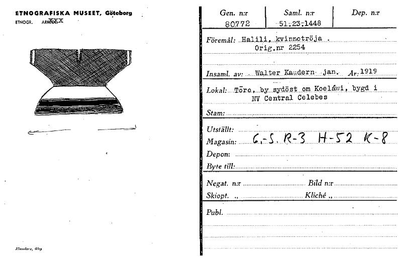 Gen. n:r 80,772 Sam!. n:r --51 ; 23 ;1448 Dep. n:r ETNOGRAFISKA MUSEET, Göteborg ETNOGR. ARKIZKX Föremål: ..11a1.11.1, kvinnotröja . Orig.nr 2254 Insaml. av: - Walter Kau.dern Az.:1919 Lokal: 15ro,...