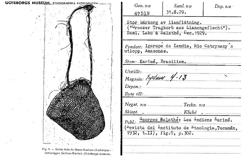 Fig. 9. — Hette faite le Bulles fendues (Teelmique, : la tt ice type). indieus Karinid. (Giitelborgs-museum, Gen. n:o 47519 • Sam!. n:o 31.8.29. Dcp. n:o • Stor bärkorg av lianflätning. ("Grosser Tra...