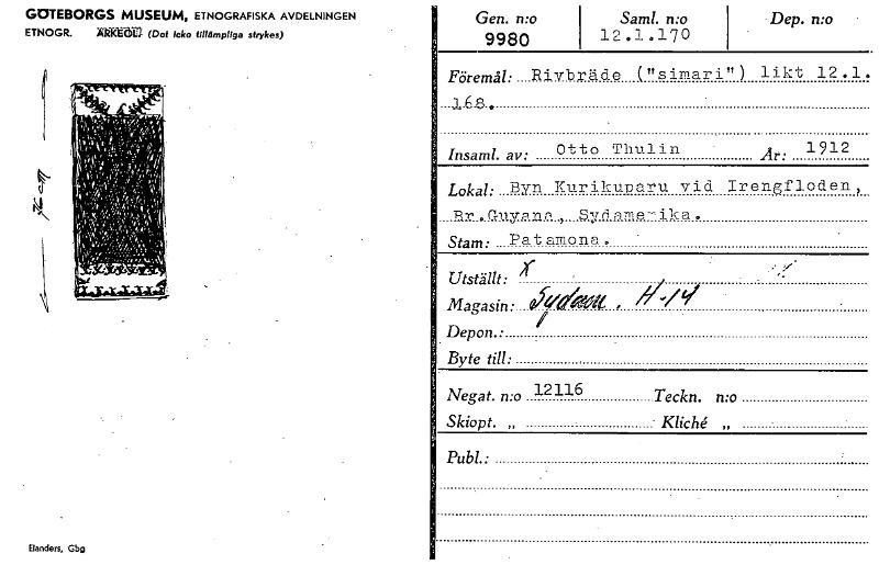 • GOTEBORGS MUSEUM, ETNOGRAFISKA AVDELNINGEN ETNOGR. Al ikä iNa (Des icke tillämpliga strykas) Elandars, Gbg Gen. n:o 9980 i Saml. n:o 12.1.170 Dep. n:o Föremål: Rivbräde ("simari') likt ....1.6.a. Ott... Visa hela