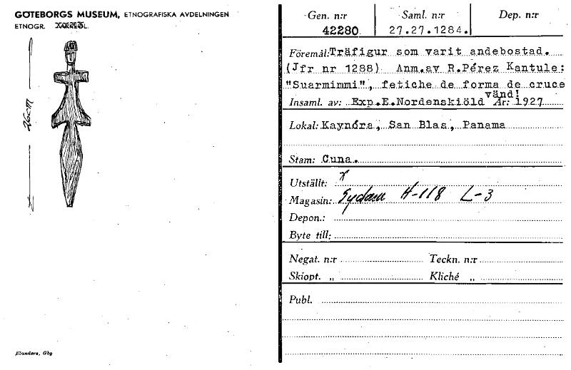 GOTEBORGS MUSEUM, ETNOGRAFISKA AVDELNINGEN ETNOGR. =am. P.landers, Gbp -Gen. n:r 42280. : Sam 1. n:r • Dep. n:r 27.27.1284.1 Föremgaräfigur som varit andebostad, (Jfr nr 1288) Anmiav R.Perez Kantule: ...
