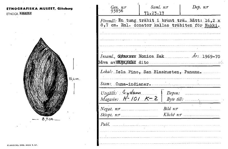 • Katalogkort ur Världskulturmuseets arkiv.