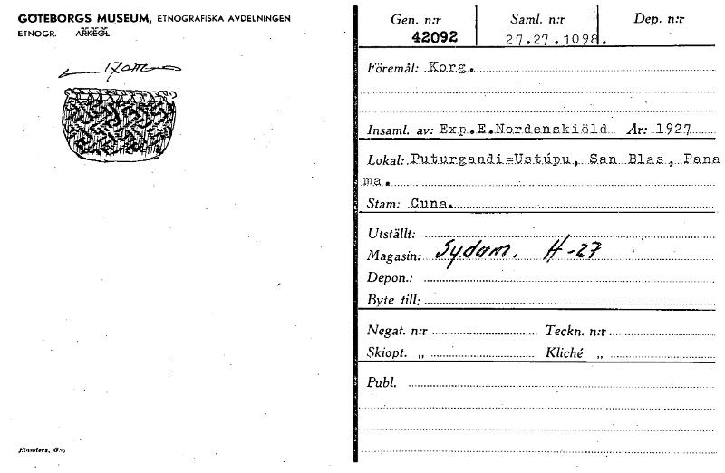 • Gen. n:r 42092 Saml. n:r Dep. n:r 2 7 . 27 . 10 9 . GOTEBORGS MUSEUM, ETNOGRAFISKA AVDELNINGEN ETNOGR. AIZVE Föremål: _Karg.. Insaml. av: Ex.p...E...N.o.r.d.e.ns.k1L-31.d... År: .1.92g Lokal: Puturgen... Visa hela