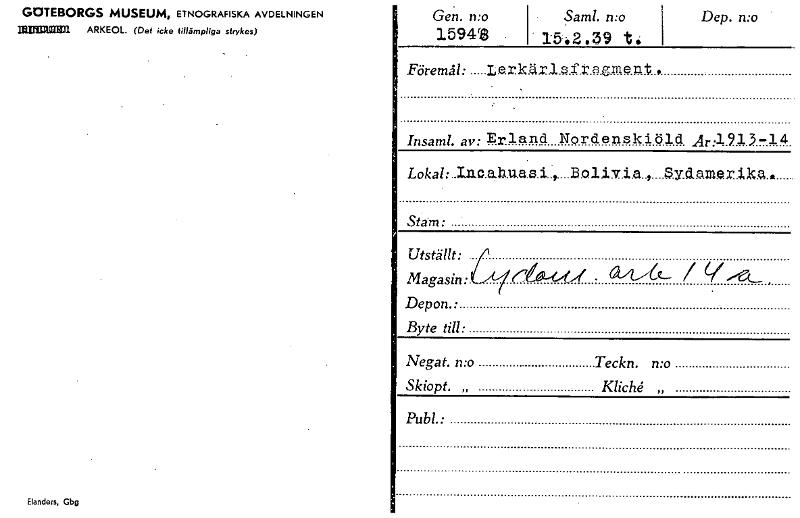 • Katalogkort ur Världskulturmuseets arkiv.
