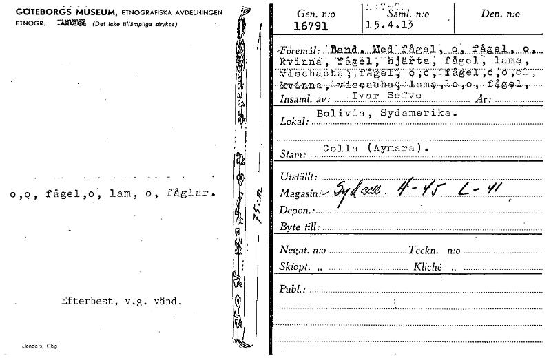 . . GOTEBORGS MUSEUM, ETNOGRAFISKA AVDELNINGEN ETNOGR. ulma (Det icke tillämpliga strykas) o,o, fågel,o, lam, o, fåglar. Efterbest, v.g. vänd. Elanders, Cbg Gen. n:o 16791 ' . ,SAth/. mo 1 5 . 4 .13 D...