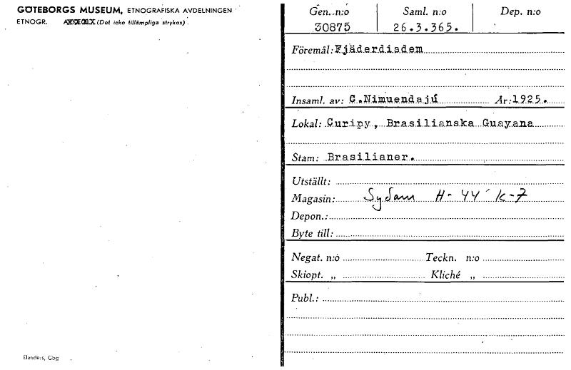 • GOTEBORGS MUSEUM, ETNOGRAFISKA AVDELNINGEN E T N OGR. ATM= (Det icke tillämpliga strykes).. Elandels, Gbg . den._n:o .30875 Sam!. n:o 26.3.365. Dep. n:o ' Föremål: Insaml. av: 0.«.N.ininendajti Ar :1... Visa hela