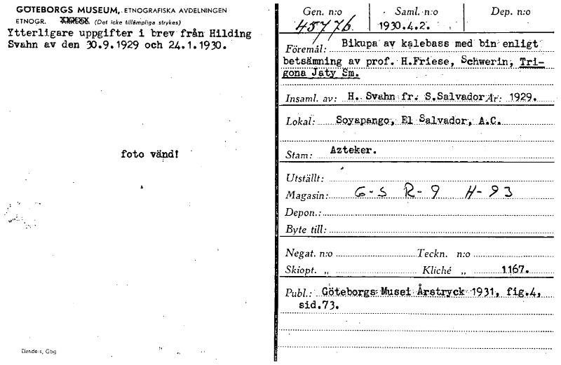 • Katalogkort ur Världskulturmuseets arkiv.