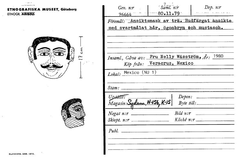 ------- - ETNOGRAFISKA MUSEET, Göteborg ETNOG R. JO= ELANDERS. GRO. 1972. ? Gen. n:r I 96664 - " Siihil: 'n:r i 80:11.79- Dep. n:r i . .... . _ Föremål:-- --Ansiktsma;sk aV-trä:-'HUdfärgat--änsikte me...Visa hela