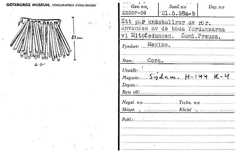 • GOTEBORGS MUSEUM, ETNOGRAFISKA AVDELNINGEN 1-• - - - -- . - Gen' . n:o, I Samt. n:o. ' i Dep. n:o 2207=-08 -.21.5.58a-b 7tt par knäskallror aviär. Anvåndes av .de båda fördan8arna vi Mitofedansen. Sa... Visa hela