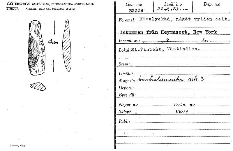 • GOTEBORGS MUSEUM, ETNOGRAFISKA AVDELNINGEN t-InVät. ARKEOL. (Det icke tillämpliga strykos) Elanders, Gbg Gen. n:o 23339. I garril: rt:o . .. . .. 1 Dep. mo Föremål: Mispiyekåcl.',--någdit vriden eelt... Visa hela