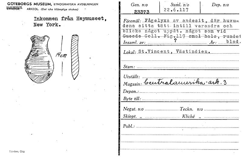 GOTEBORGS MUSEUM, ETNOGRAFISKA AVDELNINGEN 3145/64P1 ARKEOL. (Det icke tillämpliga strykes) Inkommen från Heymuseet, New York. Elcndels,ag Gen. n:o , , 23373 , • &arnl: n:o 22.6.117 • Lkp. mo Föremål....