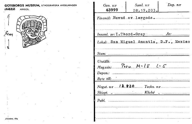 • GOTEBORGS MUSEUM, ETNOGRAFISKA AVDELNINGEN ' EWNTSZ ARKEOL Gen. n:r 43999 Samt. n:r 28-.19.203 .1 Dep. n:r Föremål: Iluvud....av....lergods.. • Insaml. av: I...T.ho.rd,Gray - Är: Lokal: San .Miguel ... Visa hela