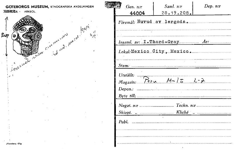 • GOTEBORGS MUSEUM, ETNOGRAFISKA AVDELNINGEN =OMR. • ARKEOL. Gen. n:r Sam!. n:r 44004 28.19.208.1 Dep. n:r Föremål: Huvud av Insaml. av: . I.. Tho.r.d.,.G.r.ay År: Lokablii.e.x.i..e.o C Me x.i.c.o.. ... Visa hela