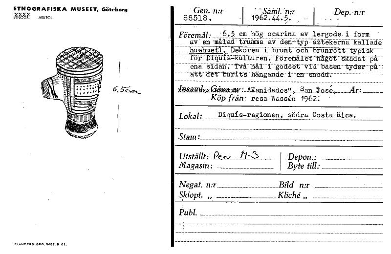 ETNOGRAFISKA MUSEET, Göteborg glW )50~ ELANDERS. GBG. 5687.8.61. • Gen. n:r 88518. . . I ' -SainL-n:r 1962.44.5. I- Dep. n:r Föremål: -6,5 cm- av- en -målad trumma huehuetl. Dekoren hög ocarina av av...