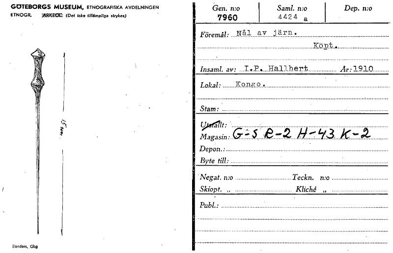• GMEBORGS MUSEUM, ETNOGRAFISKA AVDELNINGEN ETNOGR. ARKEM (Del Icke till8mpliga strykes) Gen. n:o 7960 1 Sam!. n:o 4424 a i Dep. n:o . Föremål: Nål av järna Kö Tdj . Insaml. av: ...L.P......11ar b er... Visa hela