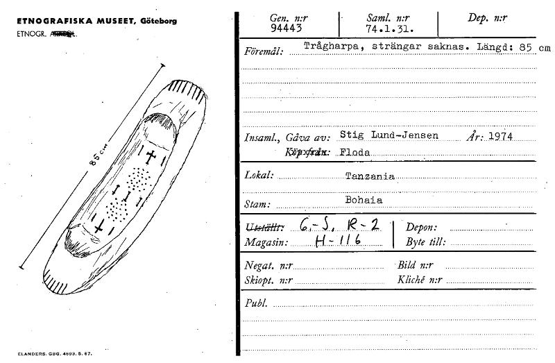 • ELANDERS. GBG. 4693. 5.67. ETNOGRAFISKA MUSEET, Göteborg ETNOGR. ~if*. Gen. n:r 94443 Saml. 74.1.31. Dep. n:r Trågharpa, strängar saknas. Längd: 85 cm Föremål: Insaml., Gåva av: Stig Lund-Jensen köp9... Visa hela