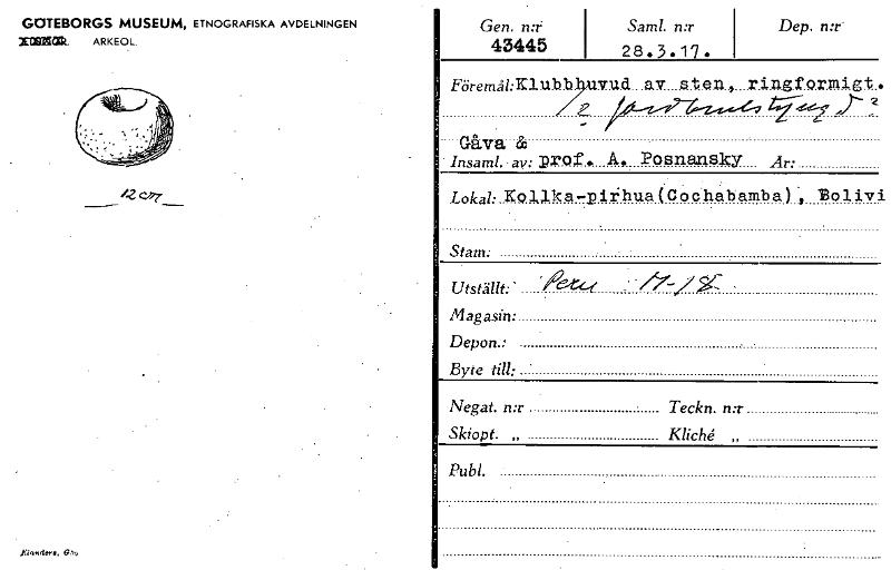 • GOTEBORGS MUSEUM, ETNOGRAFISKA AVDELNINGEN =ok ARKEOL. Gen. n:r 43445 Samt. n:r 28.3.17. Dep. n:r zec)77 Föremä:Klubb. . vu.d....av ............................ 2 Gåva ec Insaml. av: prof, A. Posnansk... Visa hela