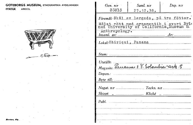 GOTEBORGS MUSEUM, ETNOGRAFISKA AVDELNINGEN et sea. ARKEOL. Blondera, Gba Gen. n:r 3 5 8 15 Saml. n:r 27.12. 3 8 .I Dep. n:r Föremål: Sk ål ..av Lergod,s,..på. tre .f.ötter.; lånat..r.B.t.t..med_...ornamentik i svart By:t1 med University of California,nu_seum oj Juithr015ol5gy. Insaml. av: År: LokabChiriqui , Panama Stam: Utställt: iMagasin: (2-AA-444APeu (9-444-14,56-i4u --aivie . 5' Depon.• : Byte till: ' Negat. n:r Teckn. n:r Skiont. „ Kliché, „ ; Publ. , , .. , , i [ocr]