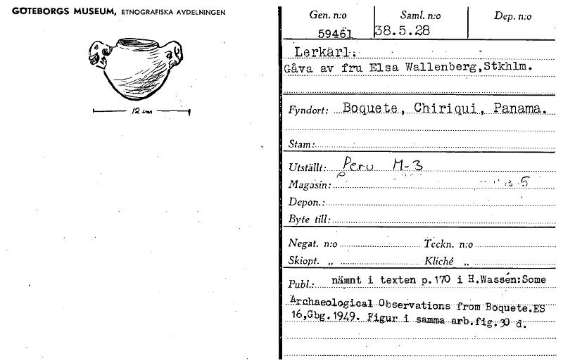 GOTEBORGS MUSEUM, ETNOGRAFISKA AVDELNINGEN Gen. n:o 59461. Lerkärl: Gåva av fru Elsa Wallenberg,Stkhlm. Fyndort: Boquete, Chiriqui, Panama. Sam!. n:o Dep. n:o 38.5.28 Stam• utställt • Pc.,r.(3 s Ma...