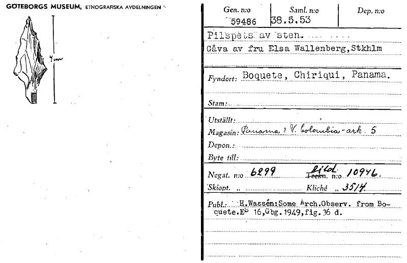 GOTEBORGS MUSEUM, ETNOGRAFISKA AVDELNINGEN t Gen. n:o 59486 Samt. n:o 38.5.53 Dep. n:o Plsiésav sten, _ Gåva av fru Elsa Wallenberg,Stkhlm Fyndort: Boquete Chiriqui , Panama. Stam. ^Utställt. Magasin:...