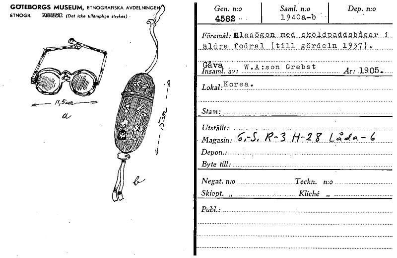 • Dep. mo Gen. n:o 4582 • Saml. n:o 19 40a—b • Riremg:filasögon med sköldpaddsbågar_d_ äldre fodral (till gördeln 1937). Gåva W.A:son Grebst Insaml. av: Ar: 1905 . Lokal:Korea. Stam: Utställt: Magasin... Visa hela