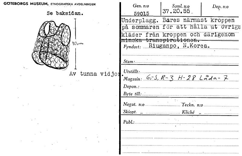 • Katalogkort ur Världskulturmuseets arkiv.