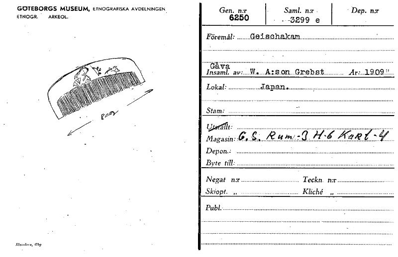 • GOTEBORGS MUSEUM, ETNOGRAFISKA AVDELNINGEN ETNOGR. ARKEOL. Elanders, Gbg Gen. n:r 6250 Saml. n:r . ' •--3299 e • Dep. n:r Föremål: Gåva Insaml. av> Gei.achakain ' VT...A:Bron.. Gr.eb.st Ar: 1.9.09" L... Visa hela
