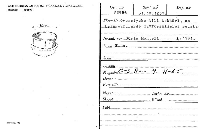 • GOTEBORGS MUSEUM, ETNOGRAFISKA AVDELNINGEN ETNOGR. fiAgtra. Gen. n:r 50796 Sam!. 31.48.12 3t Dep. n:r /Gcnv_ Ulanders, Obo Föremål: ..Ö.v.e.ra oke till kokkärl , en .kringvandrande matförsäljares r... Visa hela