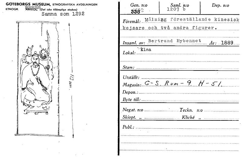 • Utställt: Magasin: Depon.• Byte till: GOTEBORGS MUSEUM, ETNOGRAFISKA AVDELNINGEN ETNOGR. Wli/WalriDel icke tillämpliga strykas) Samma som 1292 Gen. n:o 338- Saml. n:o 1207 b Dep. n:o Föremål: Målnigg... Visa hela