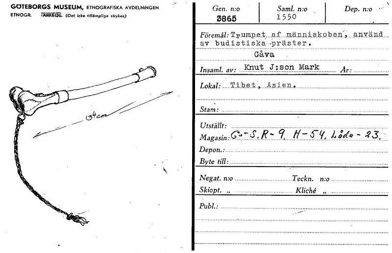 • använd Föreing:Trumet af människoben', av budistiska—Präster. GOTEBORGS MUSEUM, ETNOGRAFISKA AVDELNINGEN ETNOGR. IX" (Del Icke sfrykes) Gen. n:o 3865 Saml. n:o . 1550 Dep. n:o --• Gåva Insaml. av: Kn... Visa hela