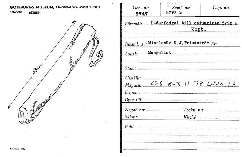 • Elanders, abg Föremål: Läderfodral till. .o.piumpip.an..5.7.92..a.. „ I — Lokal: Stam: Mongoliet - - GOTEBORGS MUSEUM, ETNOGRAFISKA AVDELNINGEN ETNOGR. Gen. n:r 9747 Sam! n:r 5792 b Dep. n:r Kö pt . ... Visa hela