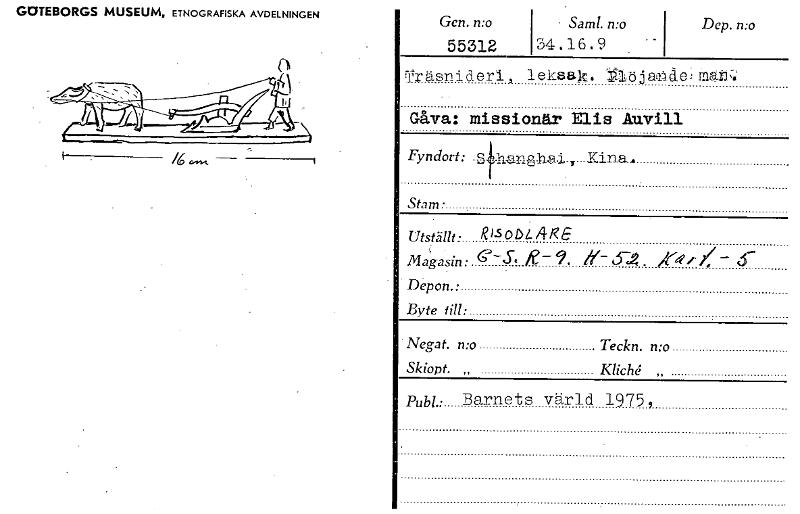 • GMEBORGS MUSEUM, ETNOGRAFISKA AVDELNINGEN Gen. n:o 55312 Sam!. n:o 34 .16.9 Dep. n:o Iräsrlideri, leksak. Gåva: missionär Elis Aavill Ib j ande • Fyndort: .s --han g X ina . Stam • Utställt. kis 051-... Visa hela