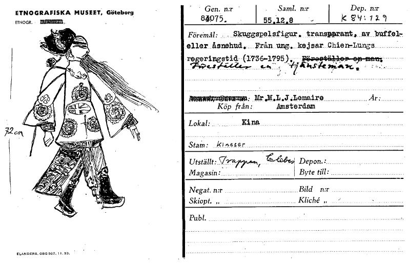 ETNOGRAFISKA MUSEET, Göteborg ETNOGR. neasem, ELANDERS. GBG 502. Il. 53. Gen. n:r I Sam!. n:r I Dep. n:r 84975. I 55:12.8 I k v9112-5 Föremål: Skuggspel sf igur transpprant av buffel- el ler åsnehud...